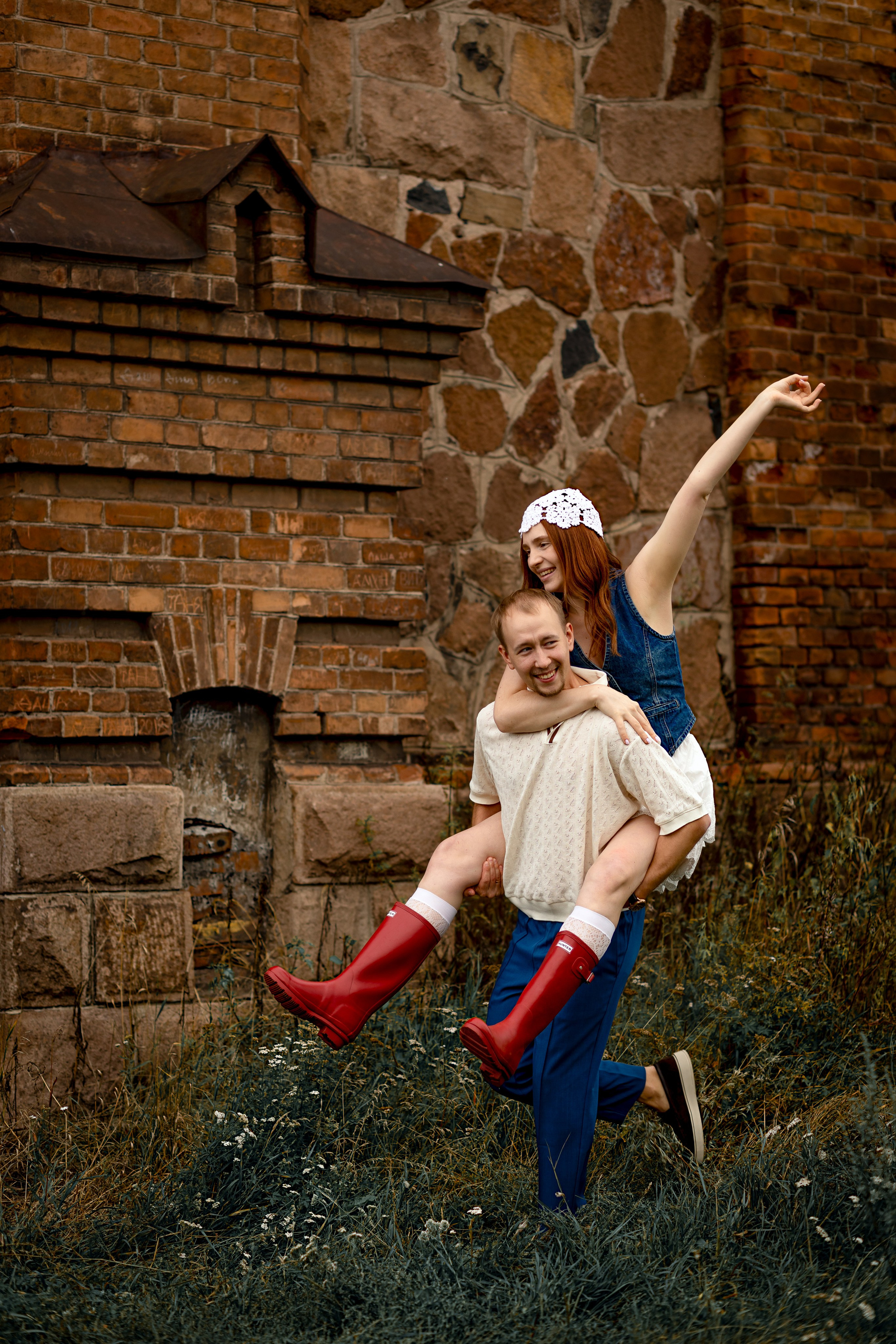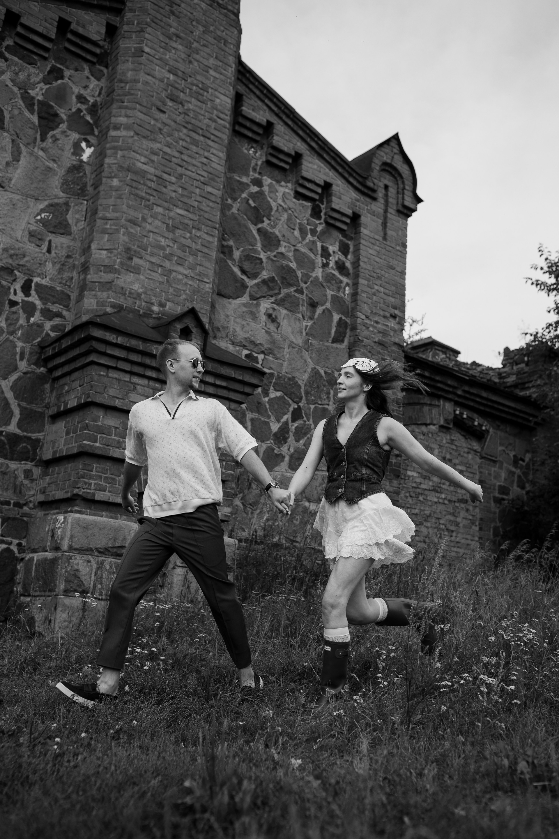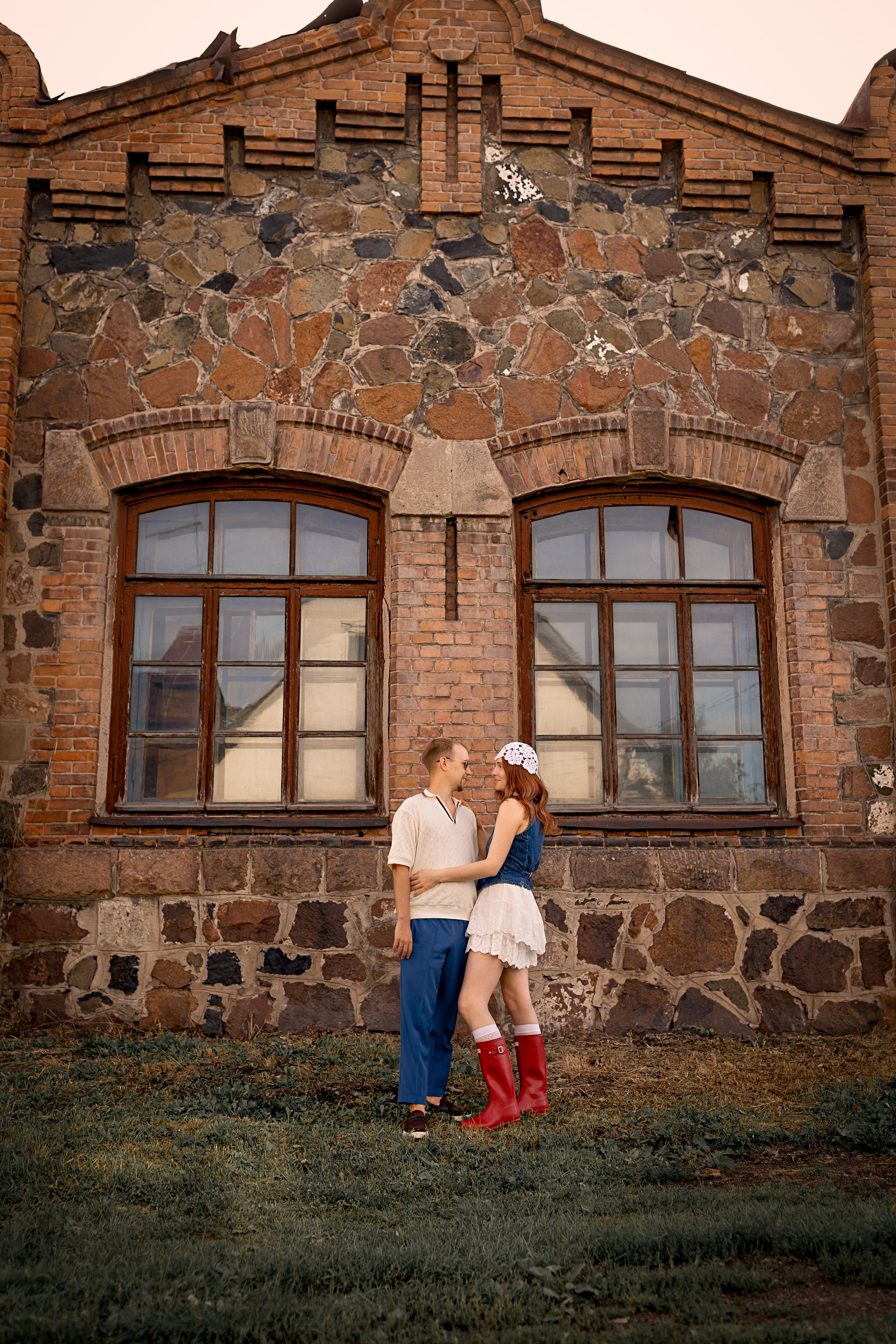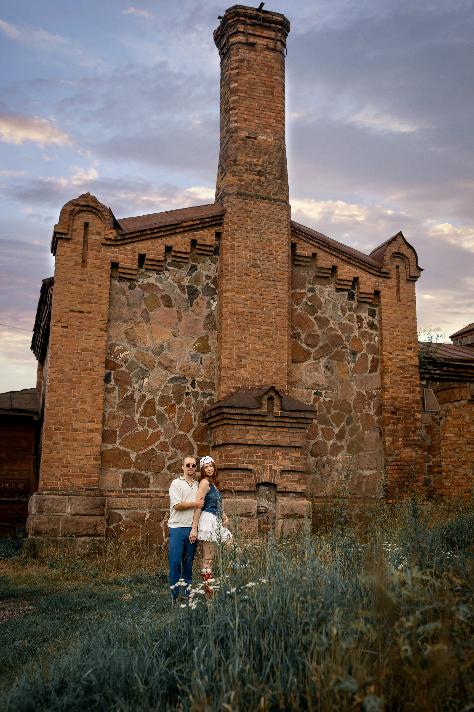 На эту съемку меня вдохновила старинная, каменная водокачка 18-го века под Красноярском. Я сразу поняла, что хочу снять парочку влюбленных. Вот так и родилась эта идея — старинное здание, рыжеволосая Диана и ее муж Федя))