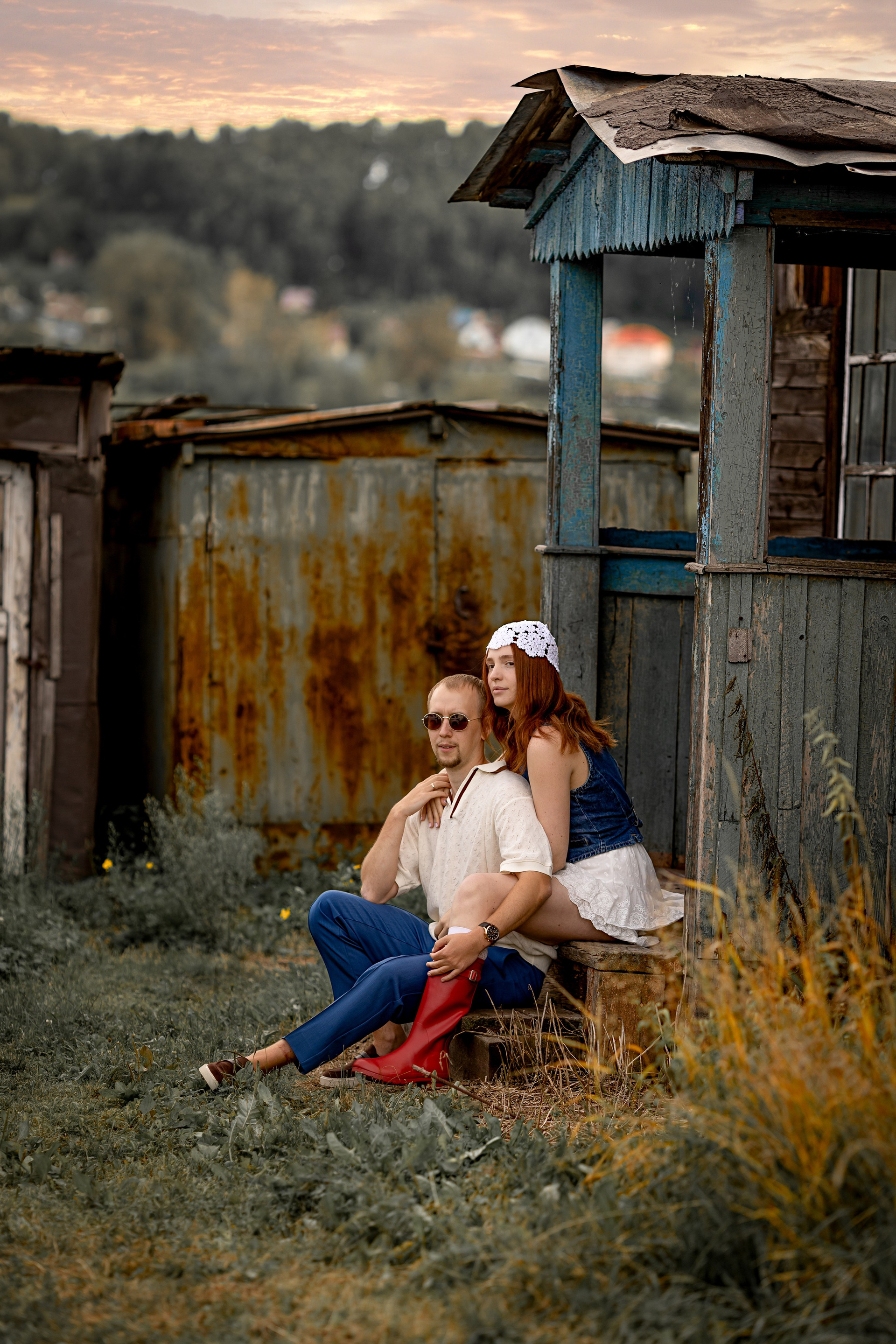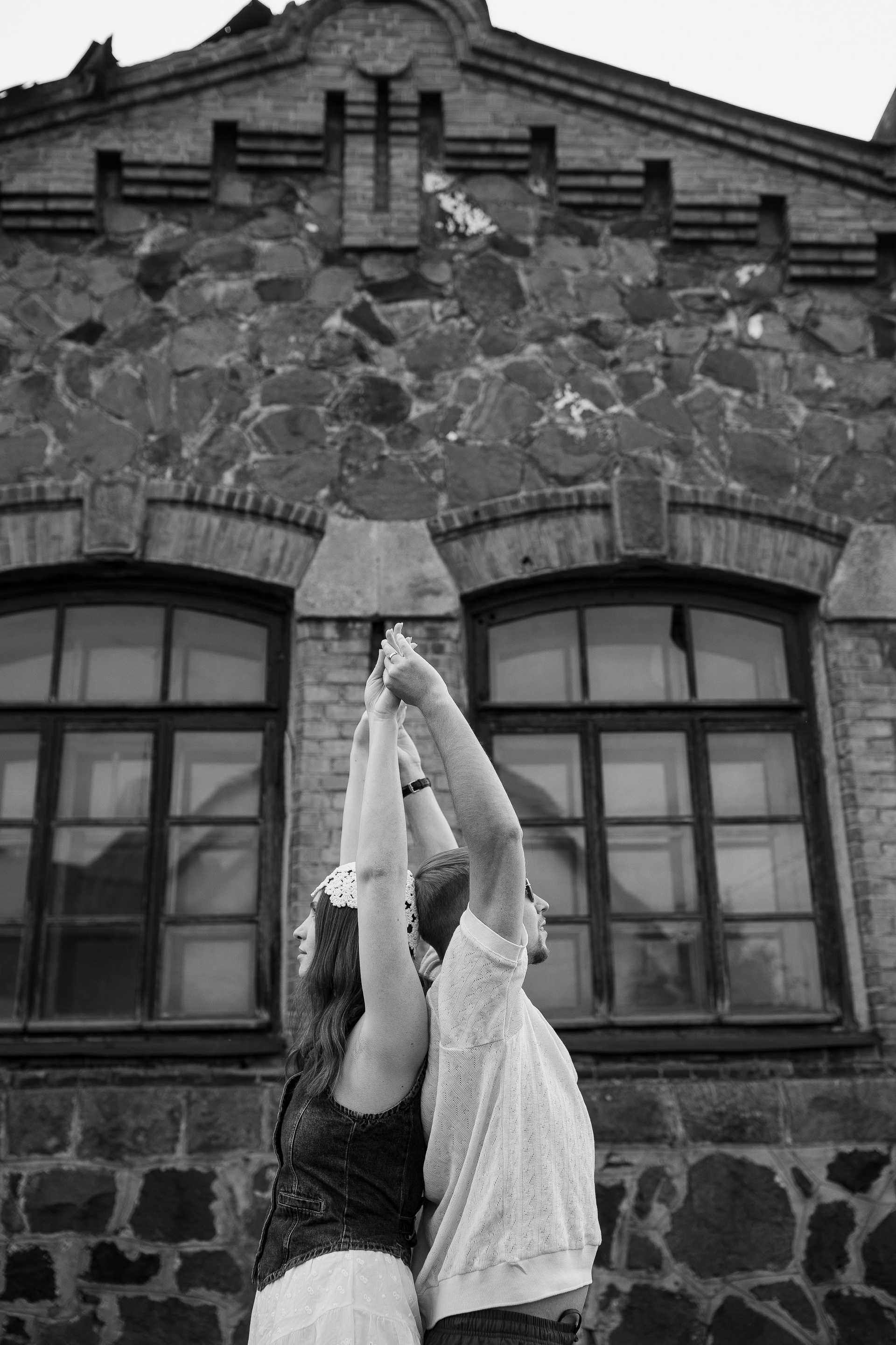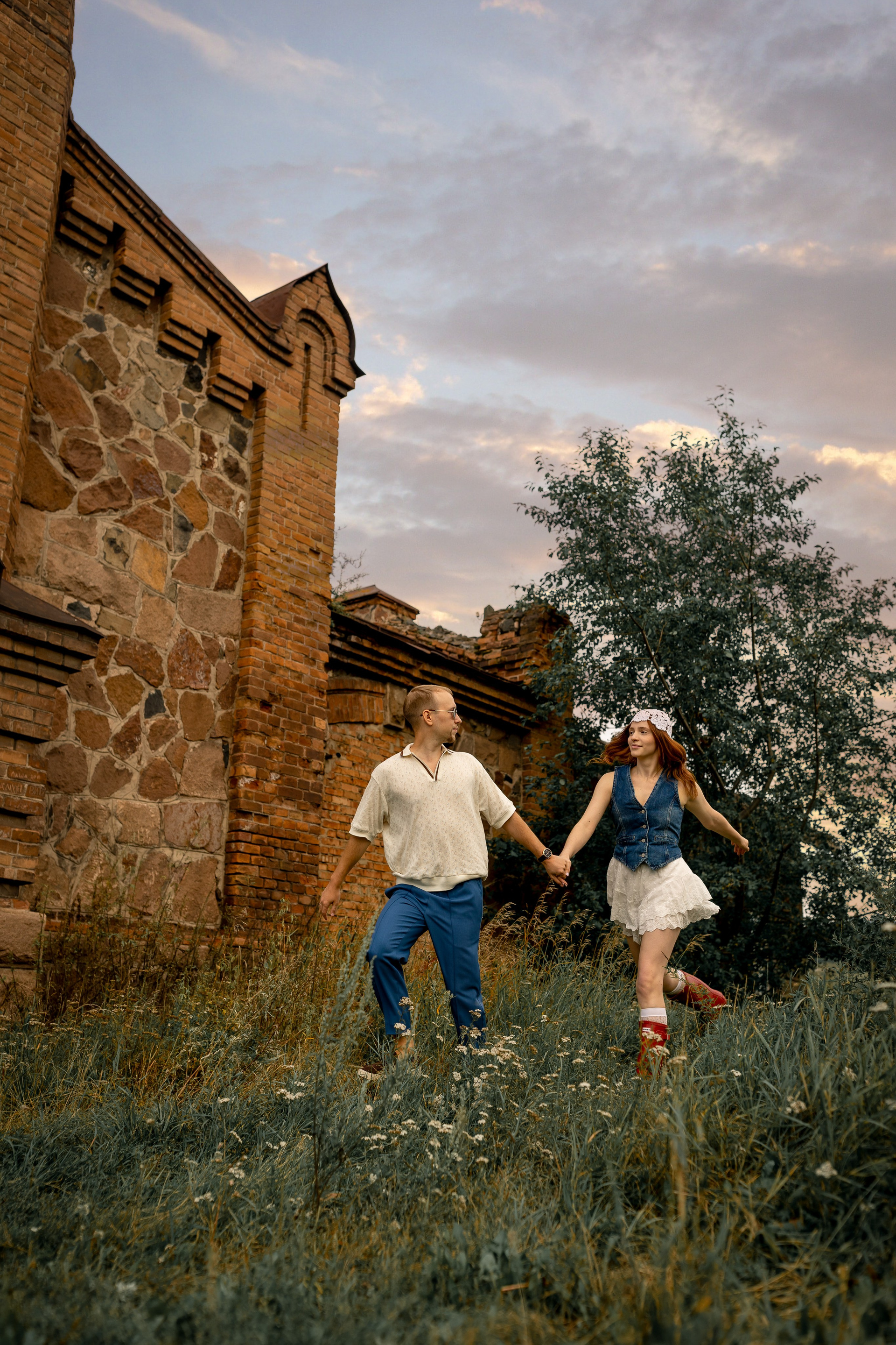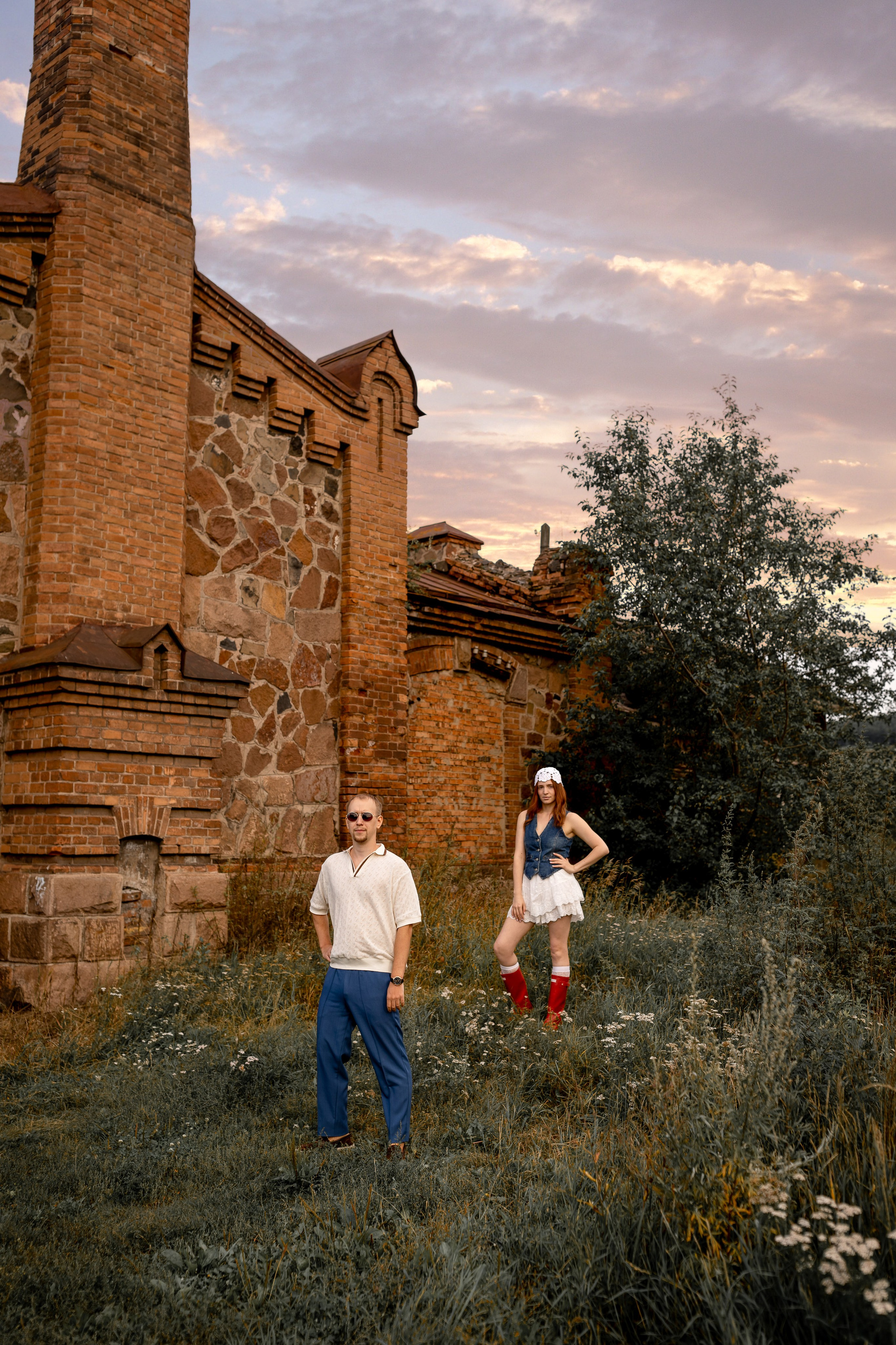 На эту съемку меня вдохновила старинная, каменная водокачка 18-го века под Красноярском. Я сразу поняла, что хочу снять парочку влюбленных. Вот так и родилась эта идея — старинное здание, рыжеволосая Диана и ее муж Федя))