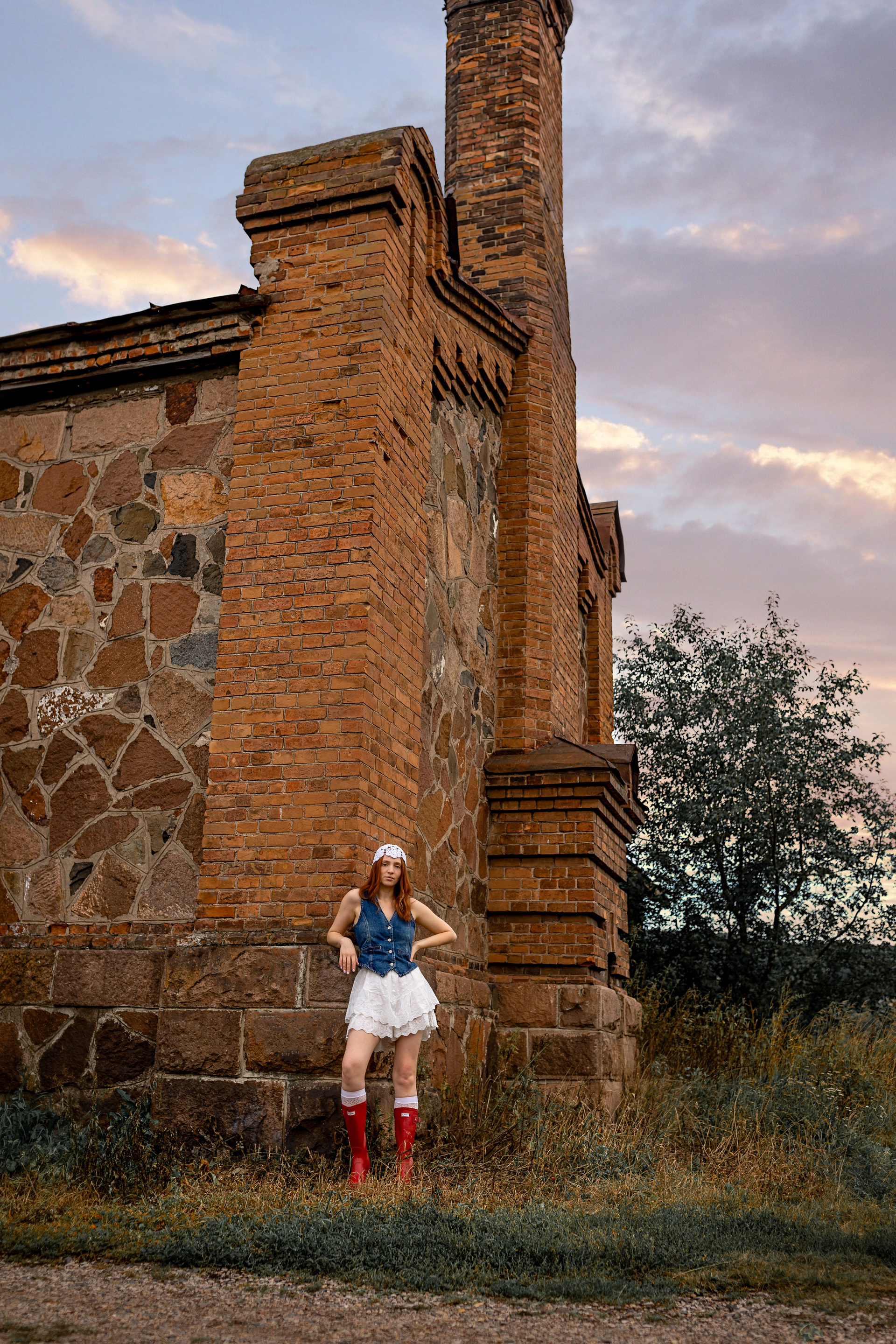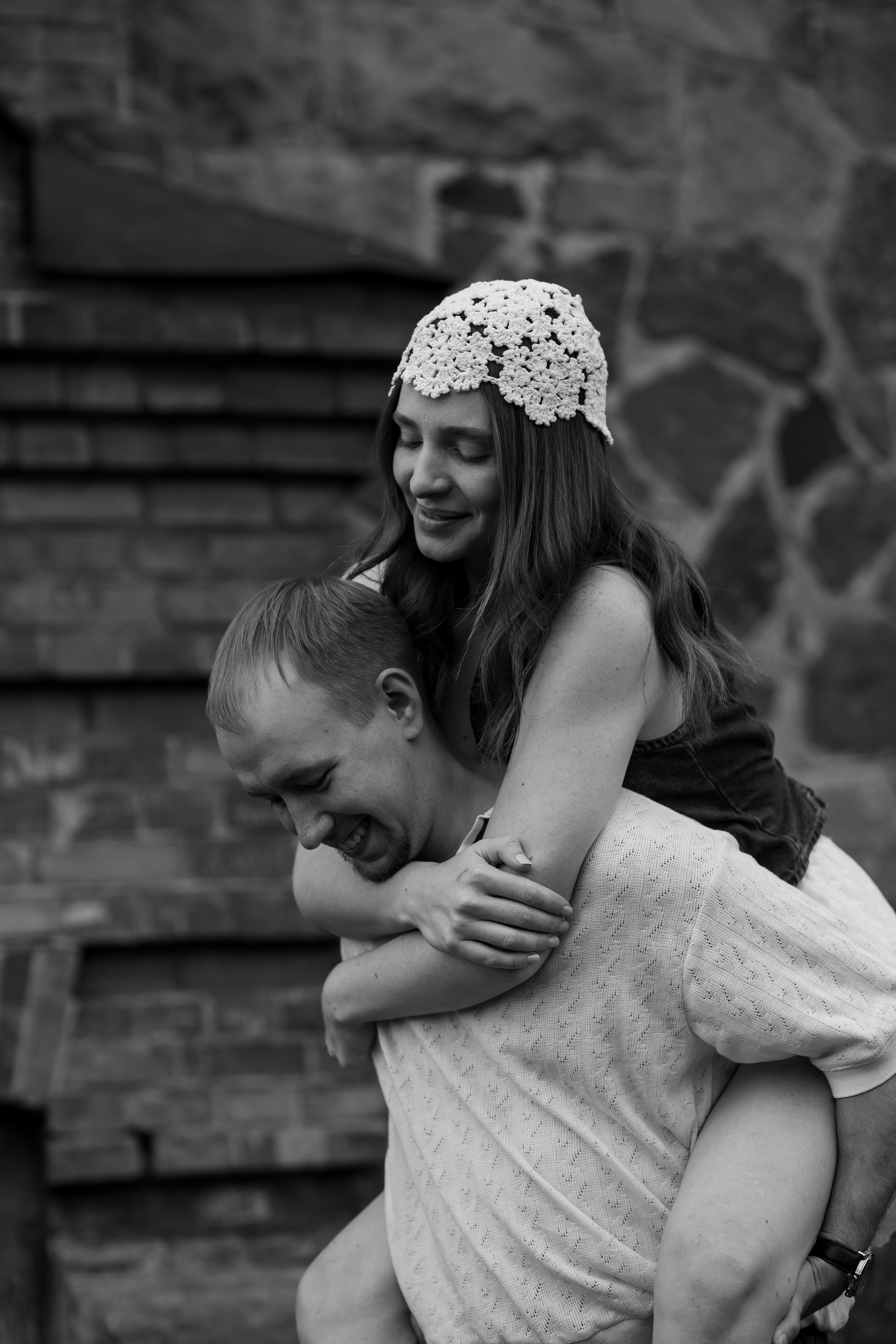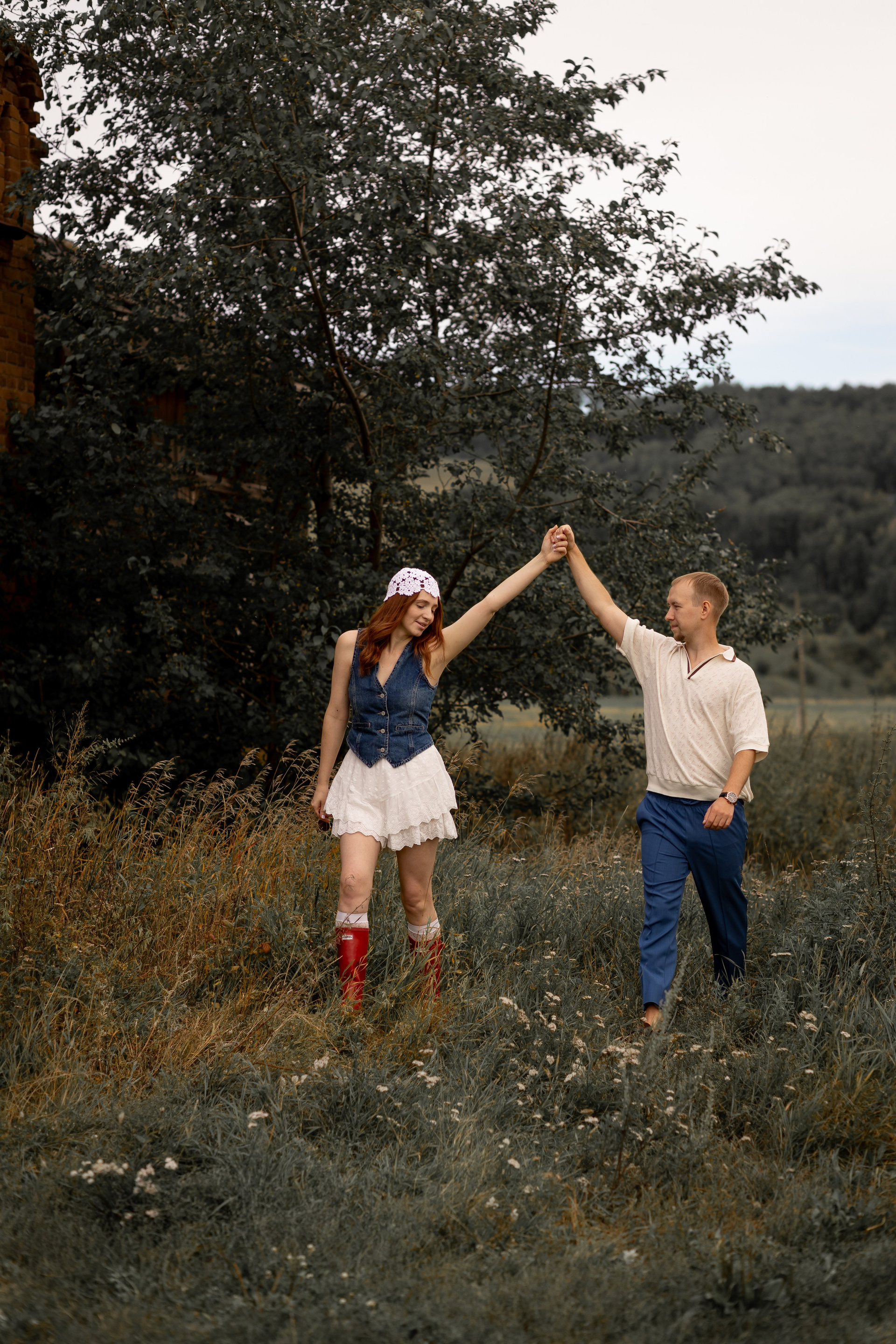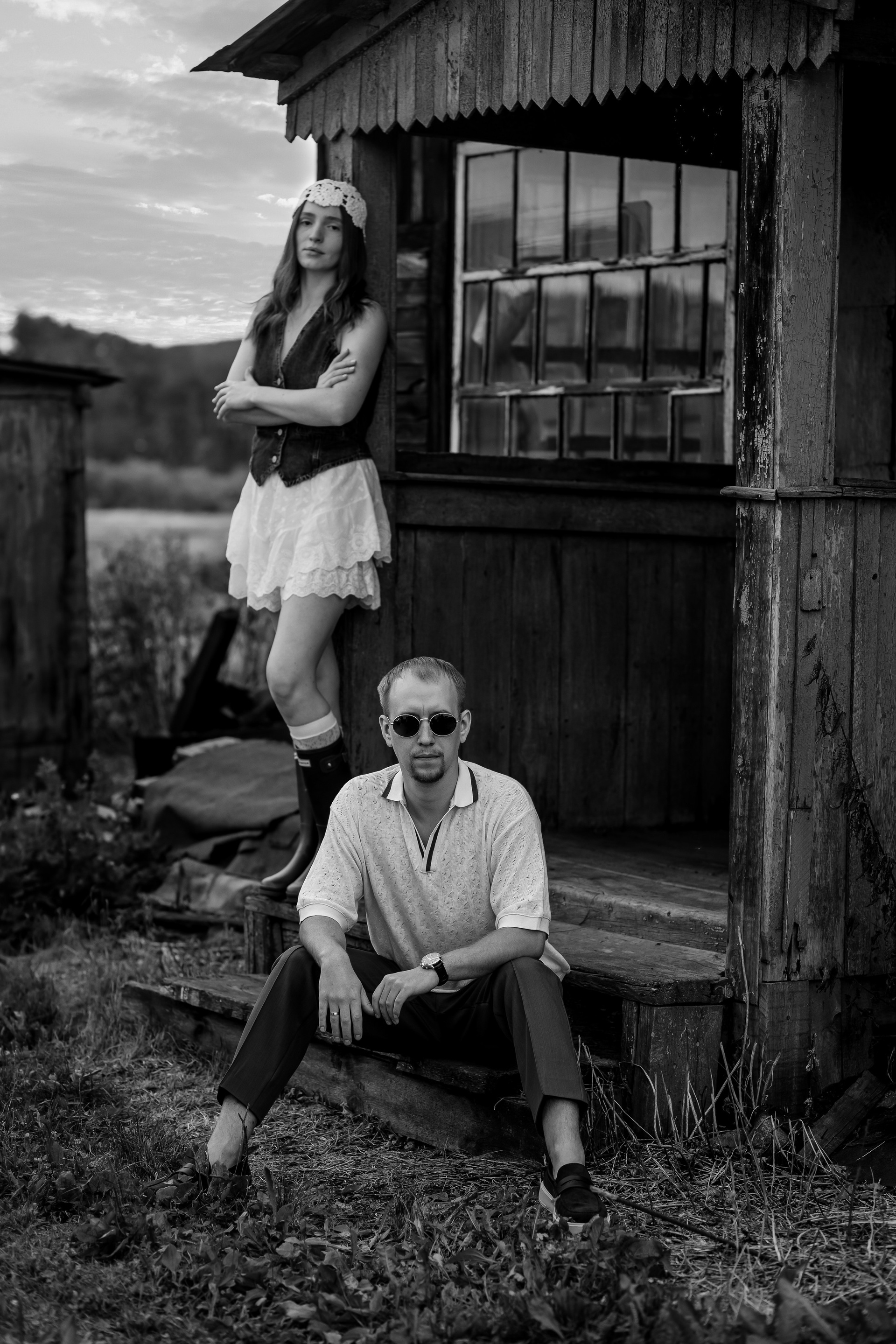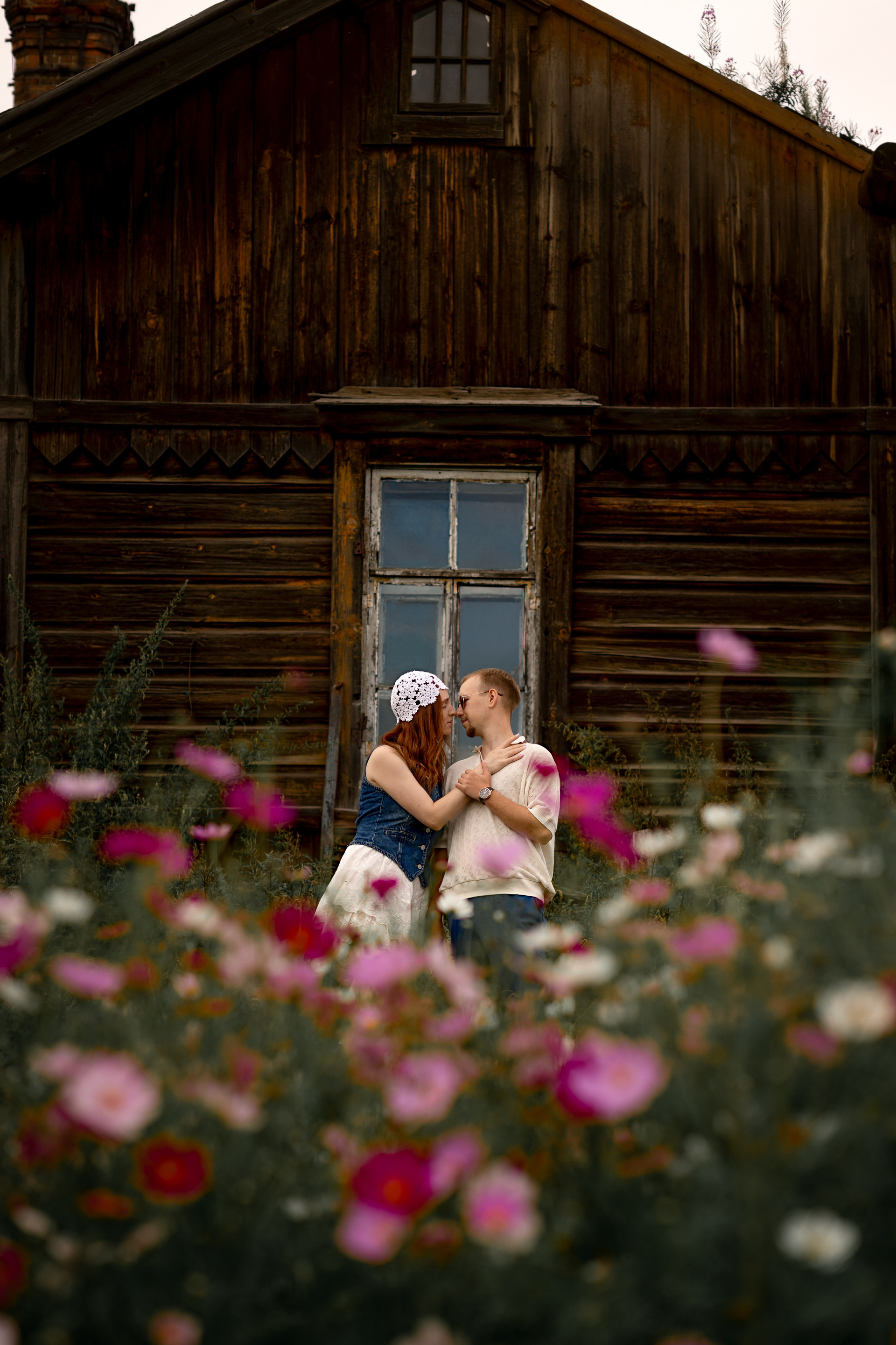 На эту съемку меня вдохновила старинная, каменная водокачка 18-го века под Красноярском. Я сразу поняла, что хочу снять парочку влюбленных. Вот так и родилась эта идея — старинное здание, рыжеволосая Диана и ее муж Федя))
