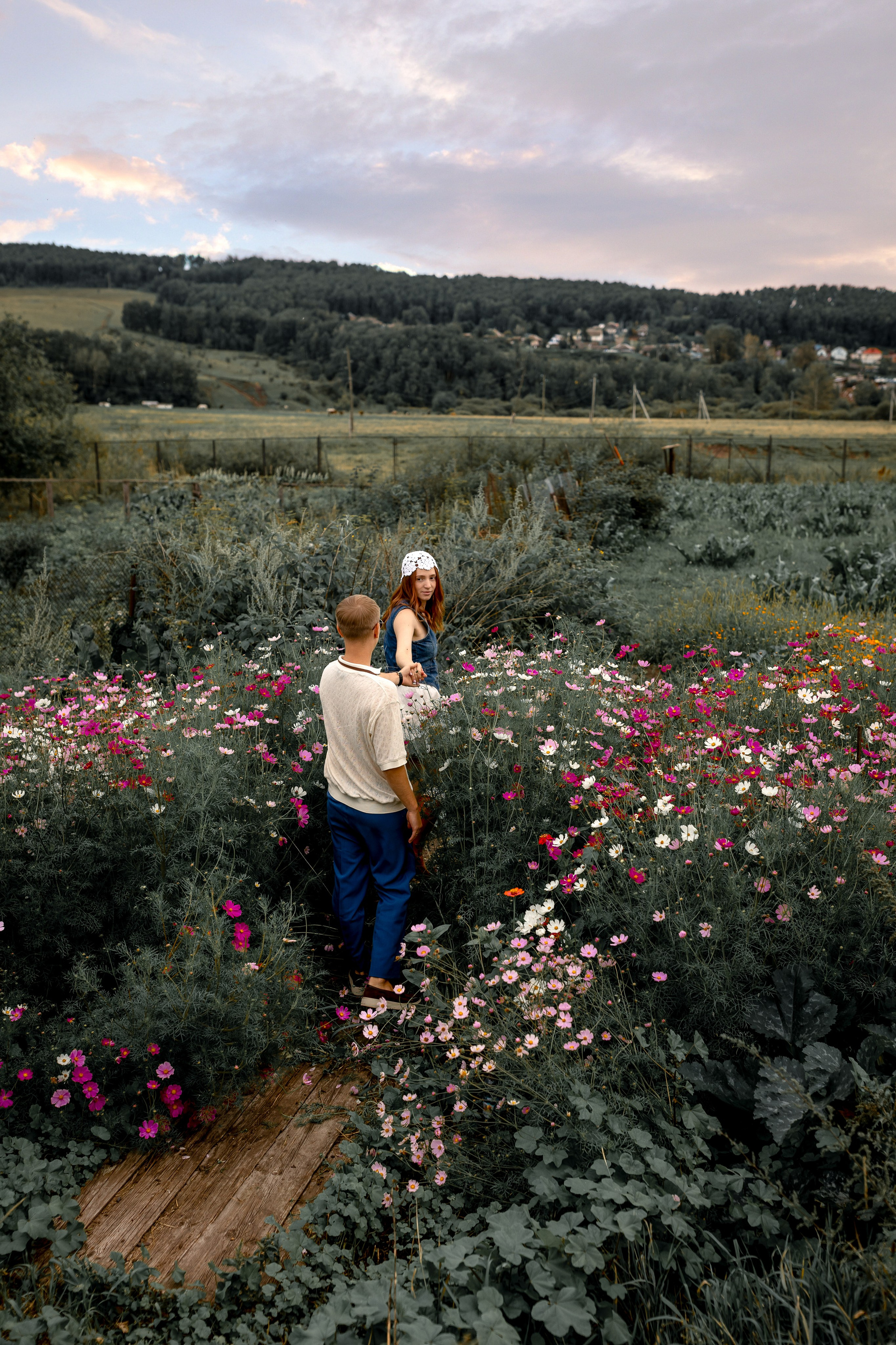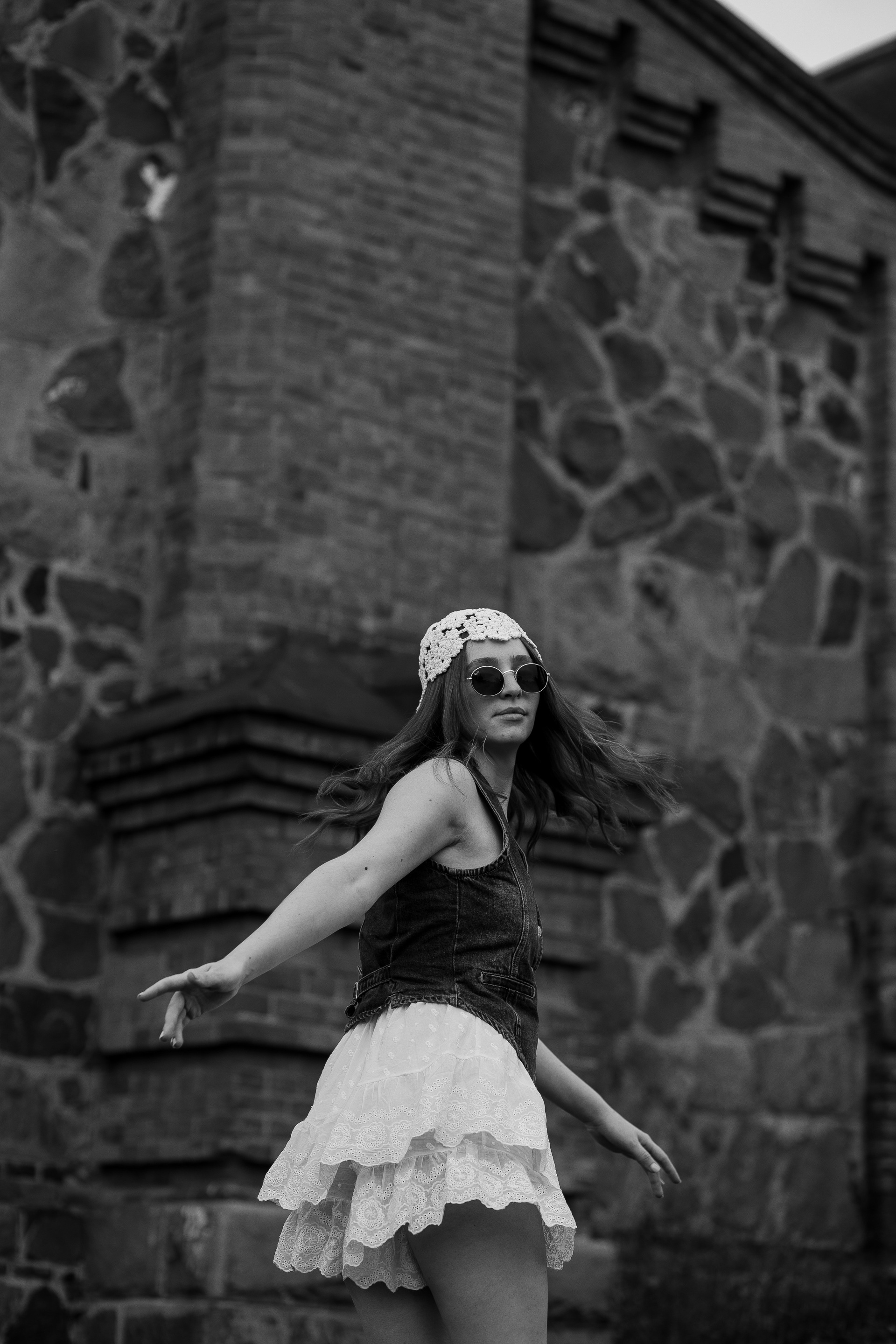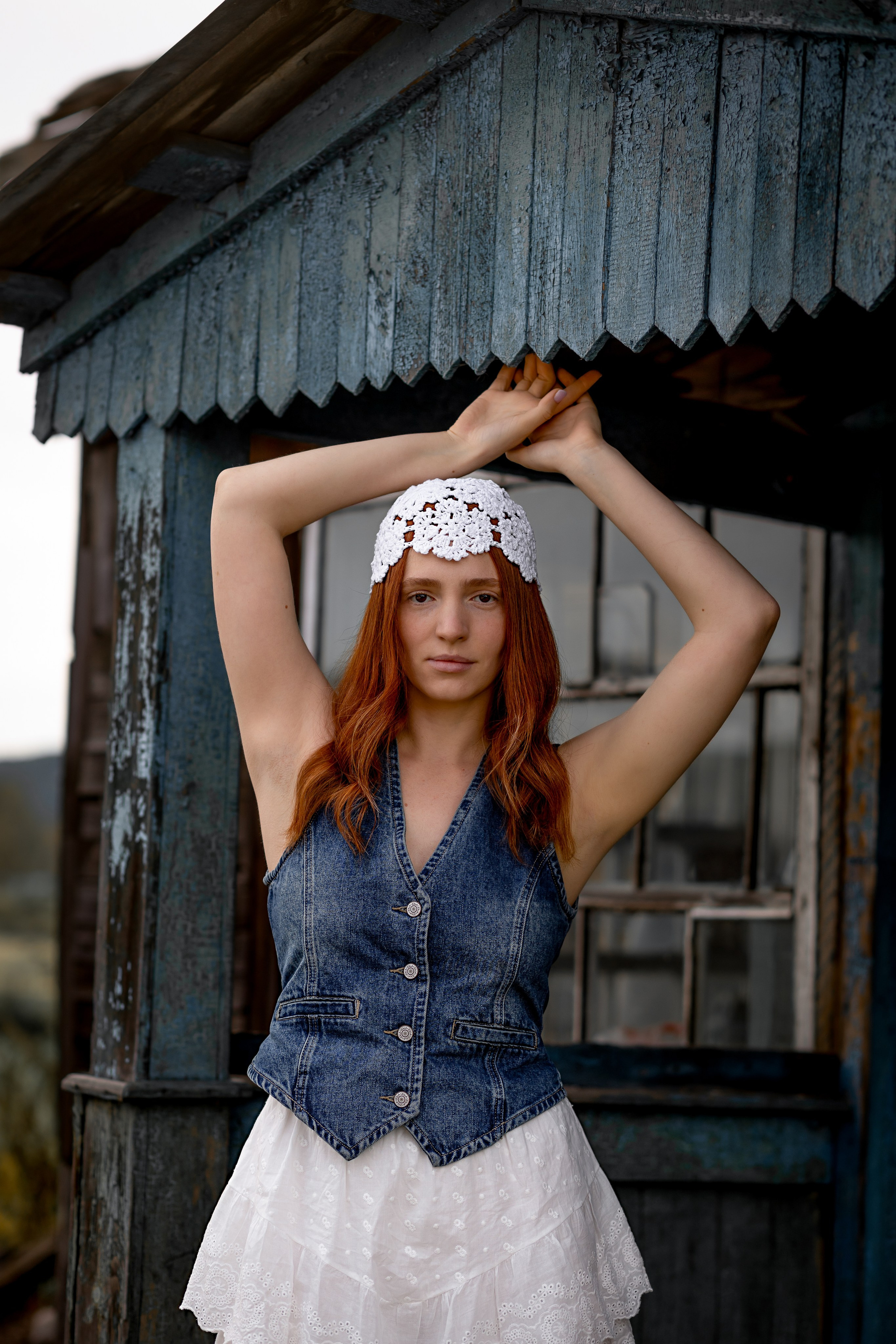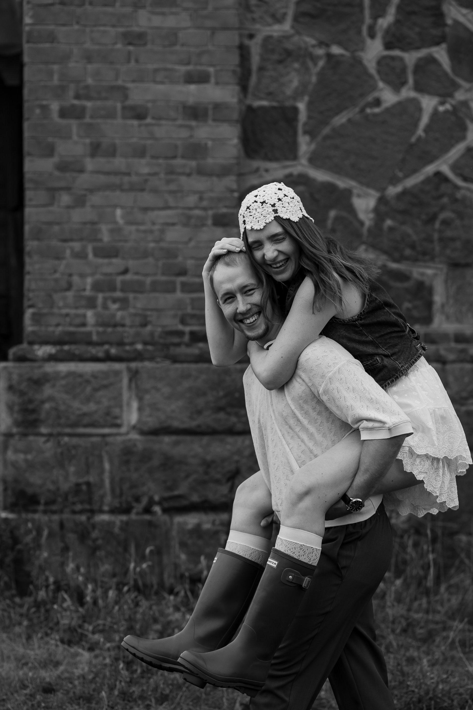 На эту съемку меня вдохновила старинная, каменная водокачка 18-го века под Красноярском. Я сразу поняла, что хочу снять парочку влюбленных. Вот так и родилась эта идея — старинное здание, рыжеволосая Диана и ее муж Федя))